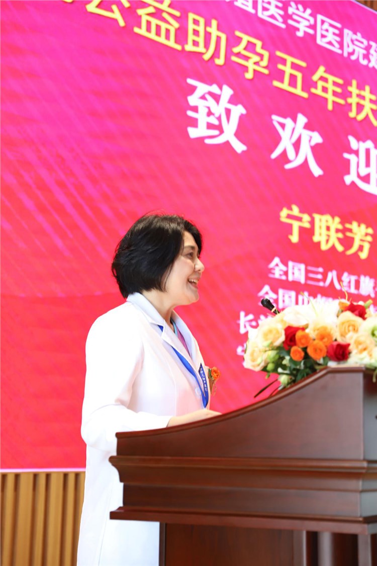 宁联芳致欢迎辞,对一直以来关注、支持长沙生殖医学医院发展与建设的各界朋友表示衷心的感谢。26年来,医院始终致力于提高百姓生殖健康水平,促进家庭的稳定、社会的和谐及民族的健康繁衍,已将医院建成湖南省三级生殖与遗传专科医院、国家高新技术企业、省市两级院士专家工作站,成功地帮助2.6万个不孕症家庭实现了生儿育女的梦想,获得了“全国文明单位”“全国巾帼文明岗”“全国百姓放心示范医院”等140余项国家、省市级荣誉。